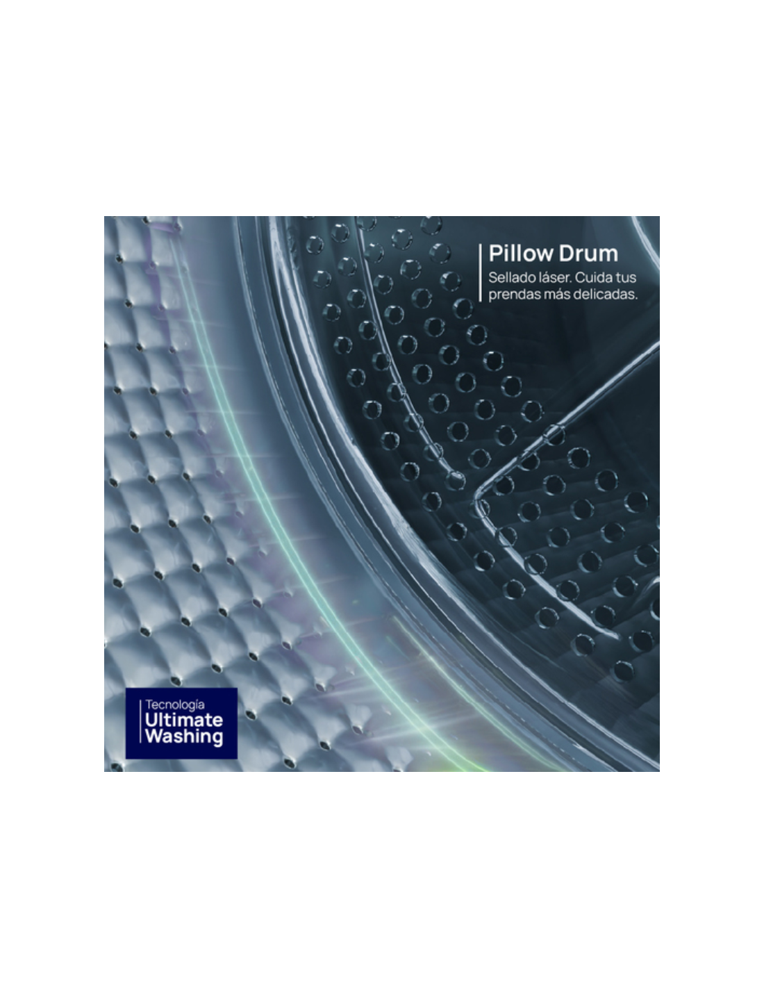 Su motor Eco Inverter reduce el consumo de energía y el ruido, asegurando un rendimiento duradero y silencioso. El tambor de acero inoxidable Pillow Drum con 560 almohadillas ofrece un lavado suave que protege tus prendas más delicadas, evitando fricción y conservando colores y texturas.