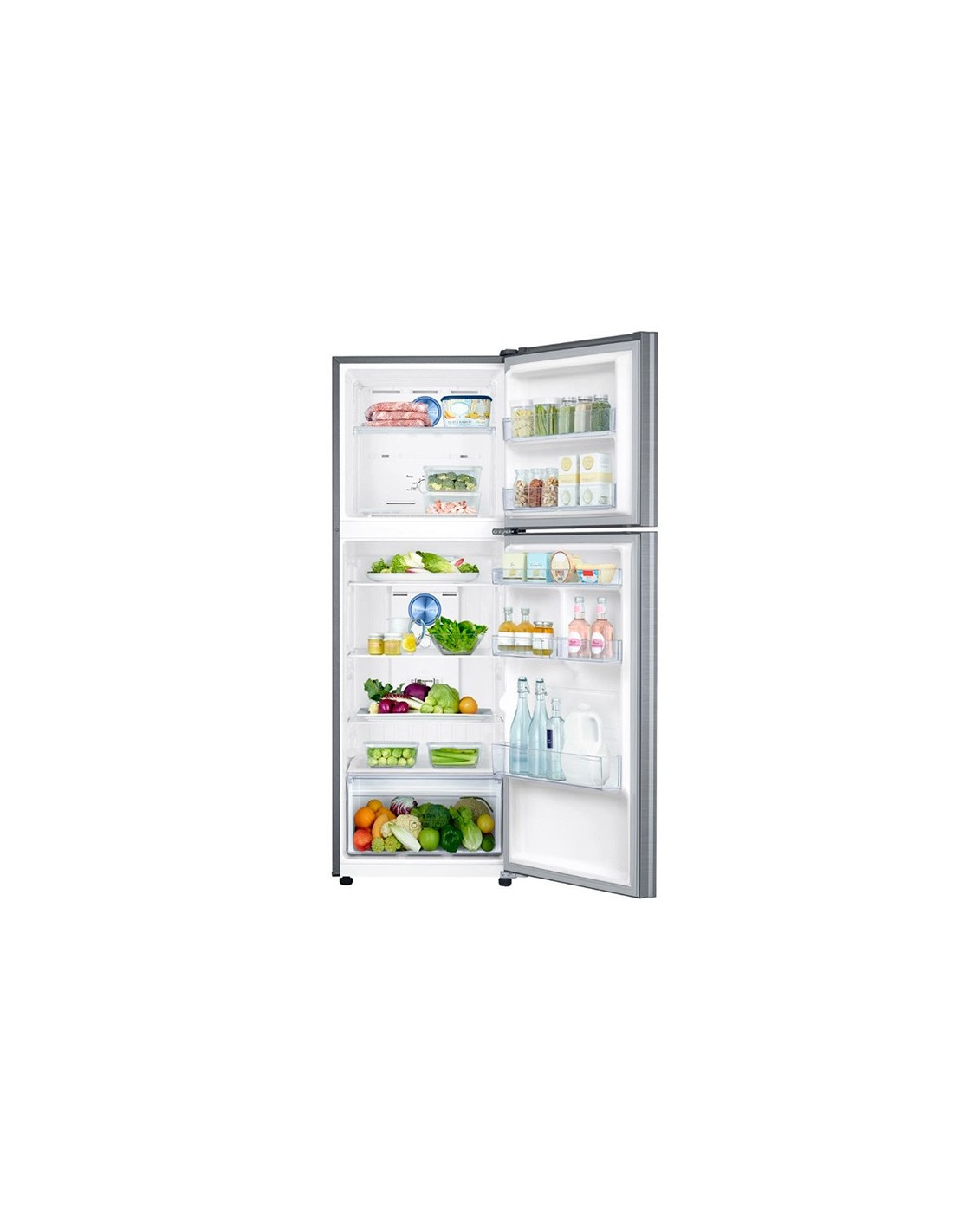 La heladera Samsung RT32K5070S8 tiene un práctico y cómodo diseño exterior de tipo Top Mount, es decir que ubica el freezer en la parte superior y el refrigerador en la inferior. En su interior, dispone de anaqueles y estantes regulables en altura que se adaptan a las diversas necesidades de guardado de productos y alimentos.