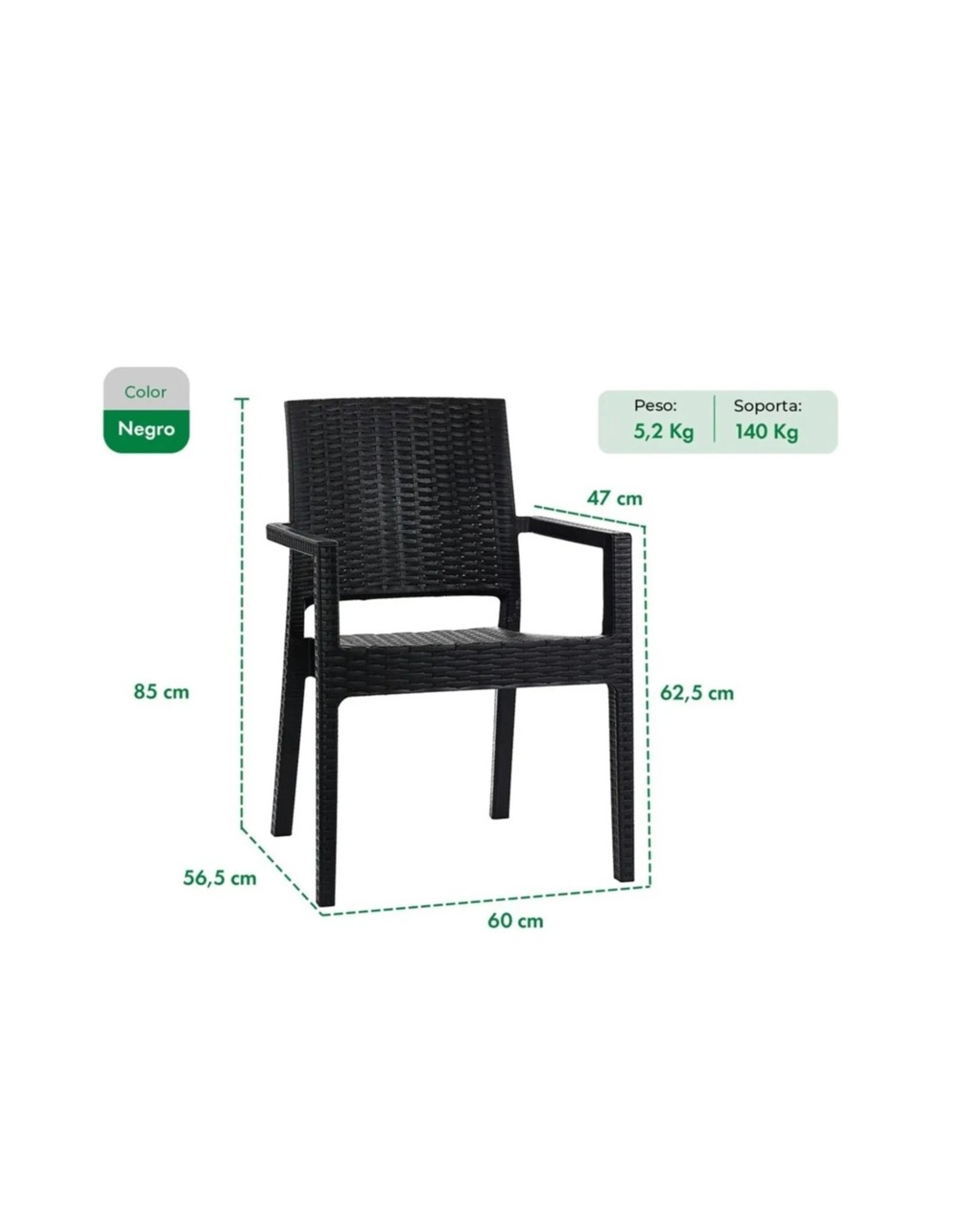 - Peso máximo soportado: 140 kg